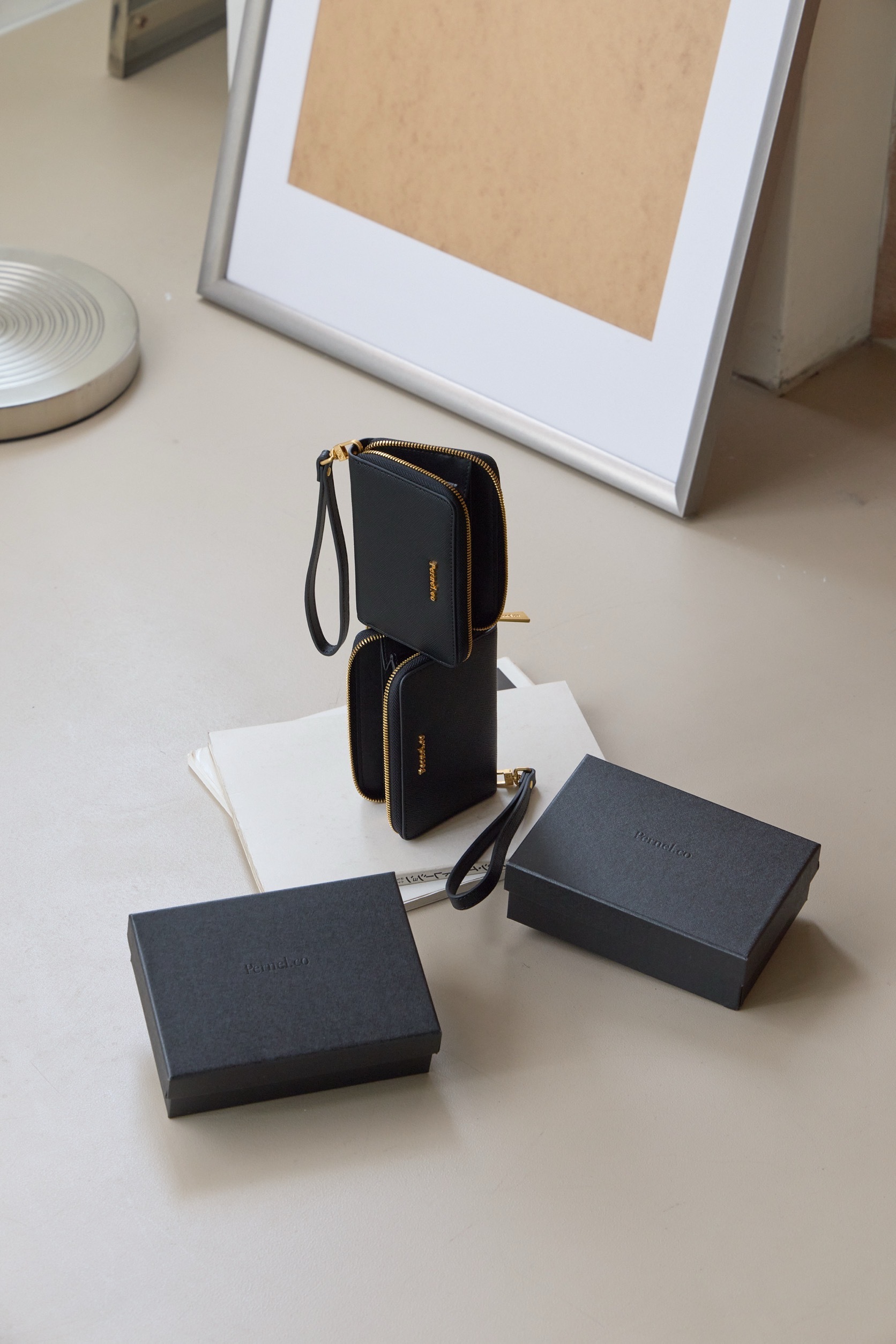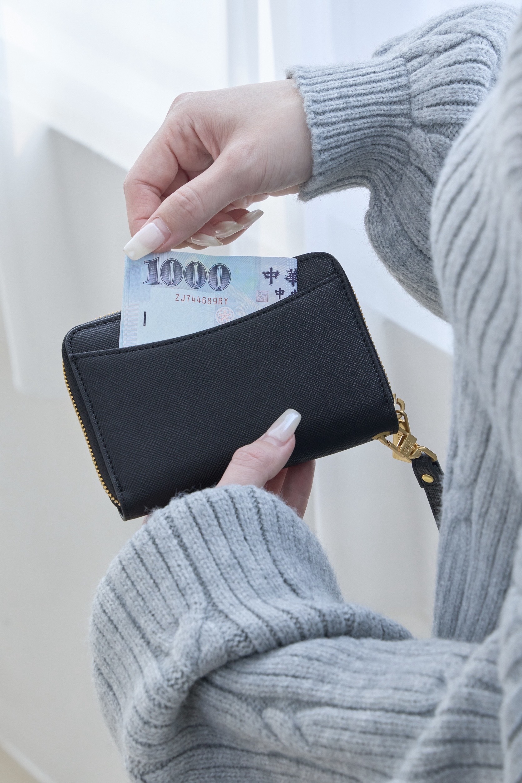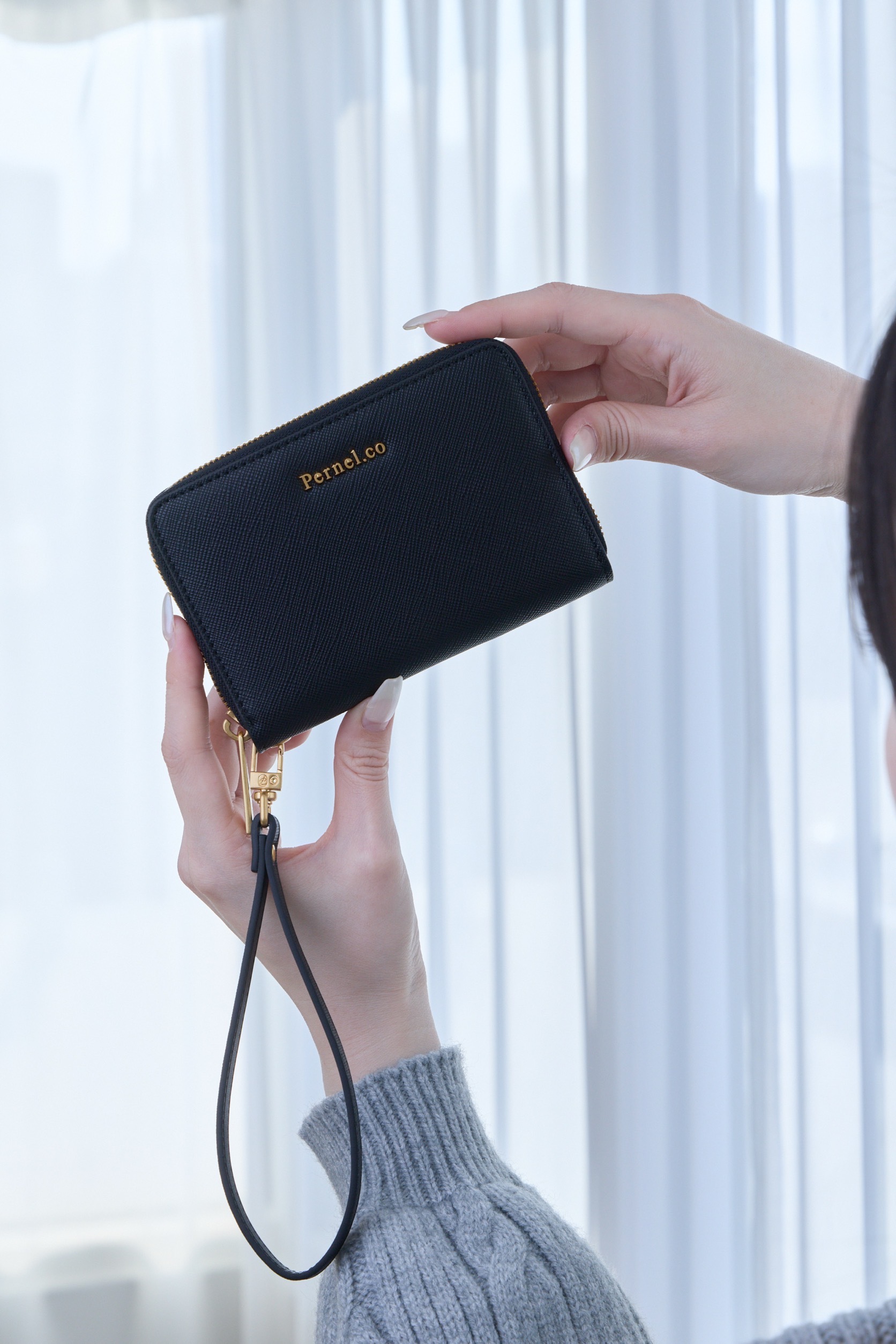Pernel.co 開運系列拉鍊短夾 x 霧感立體紋理 ( 2 Colors / 黑 )