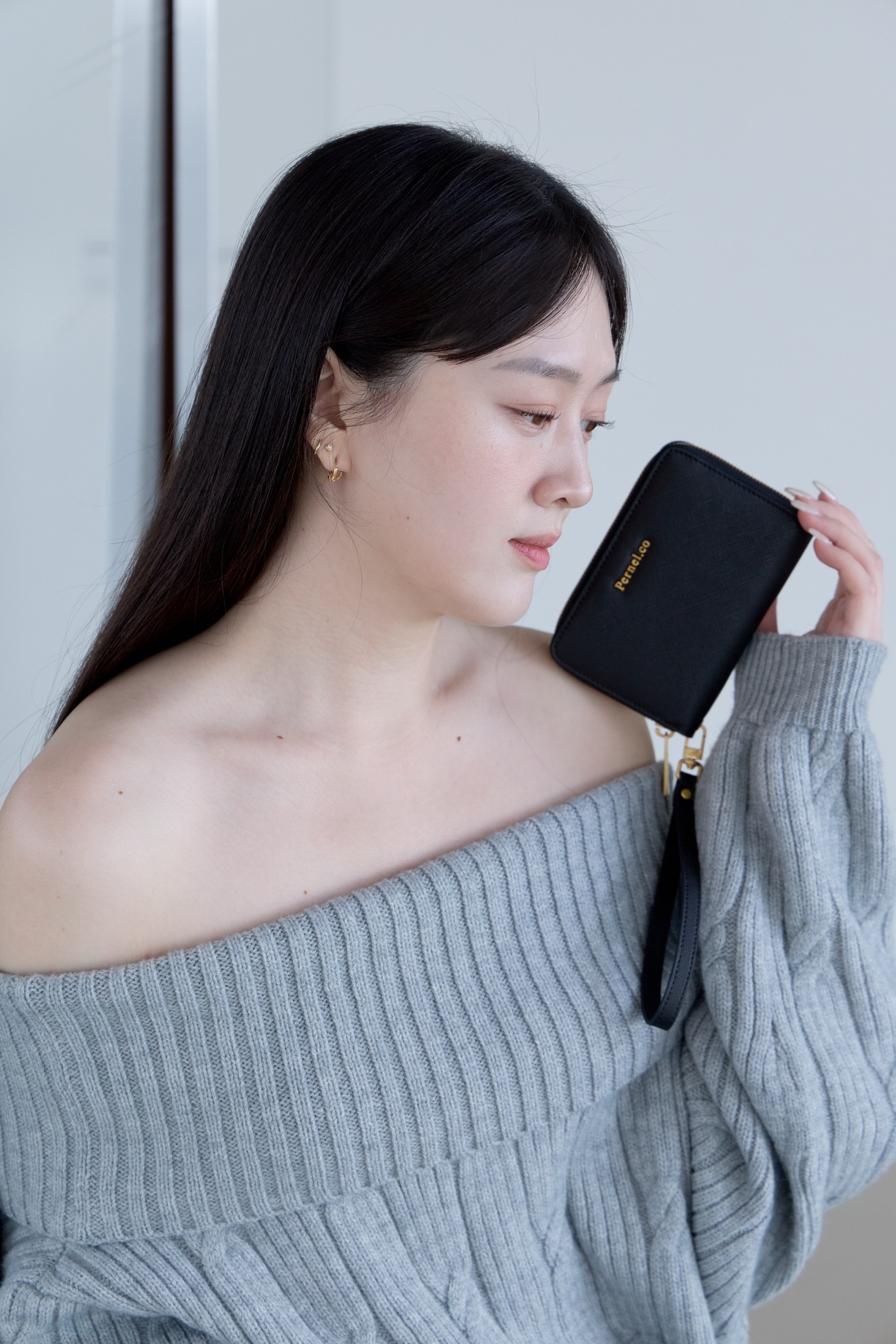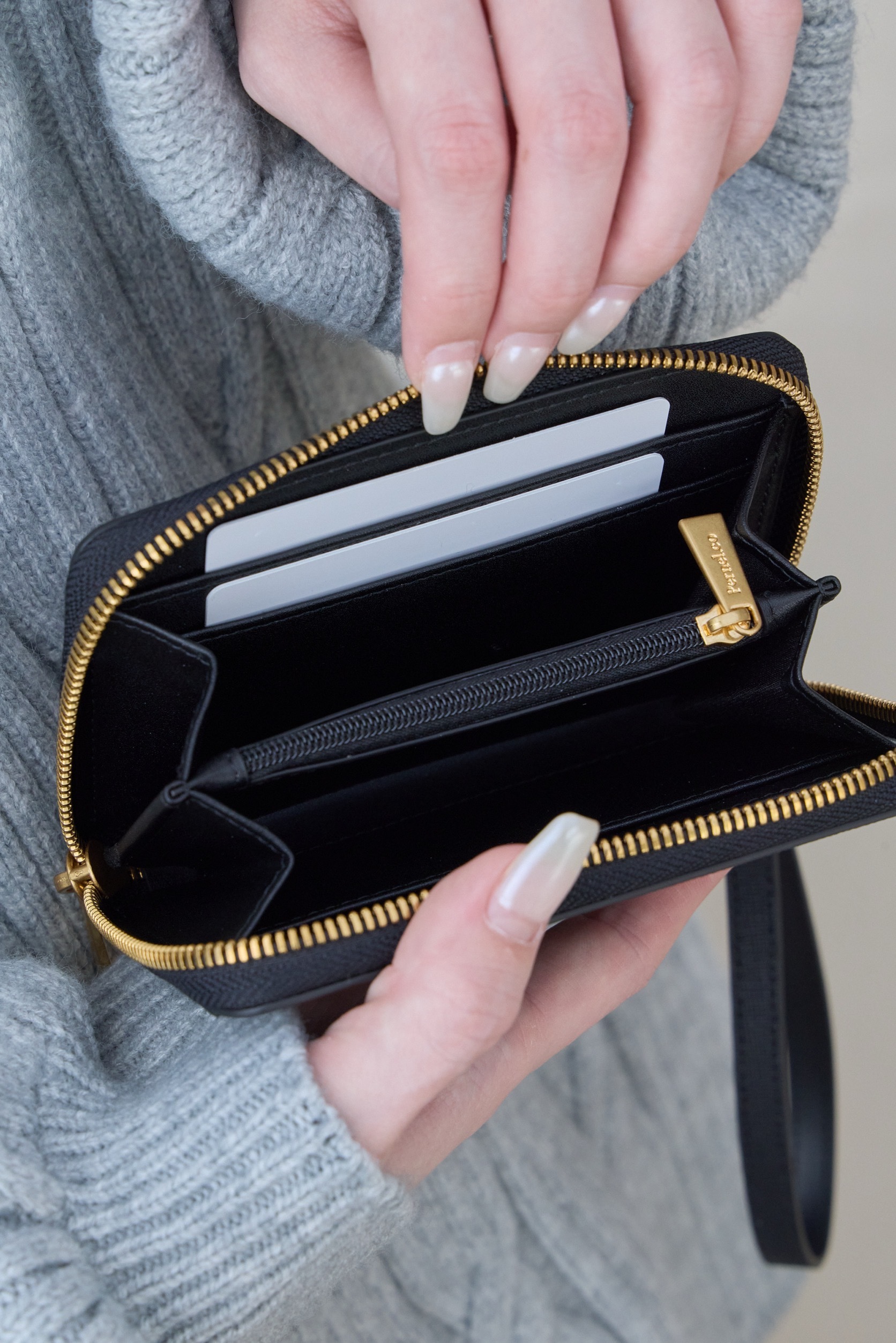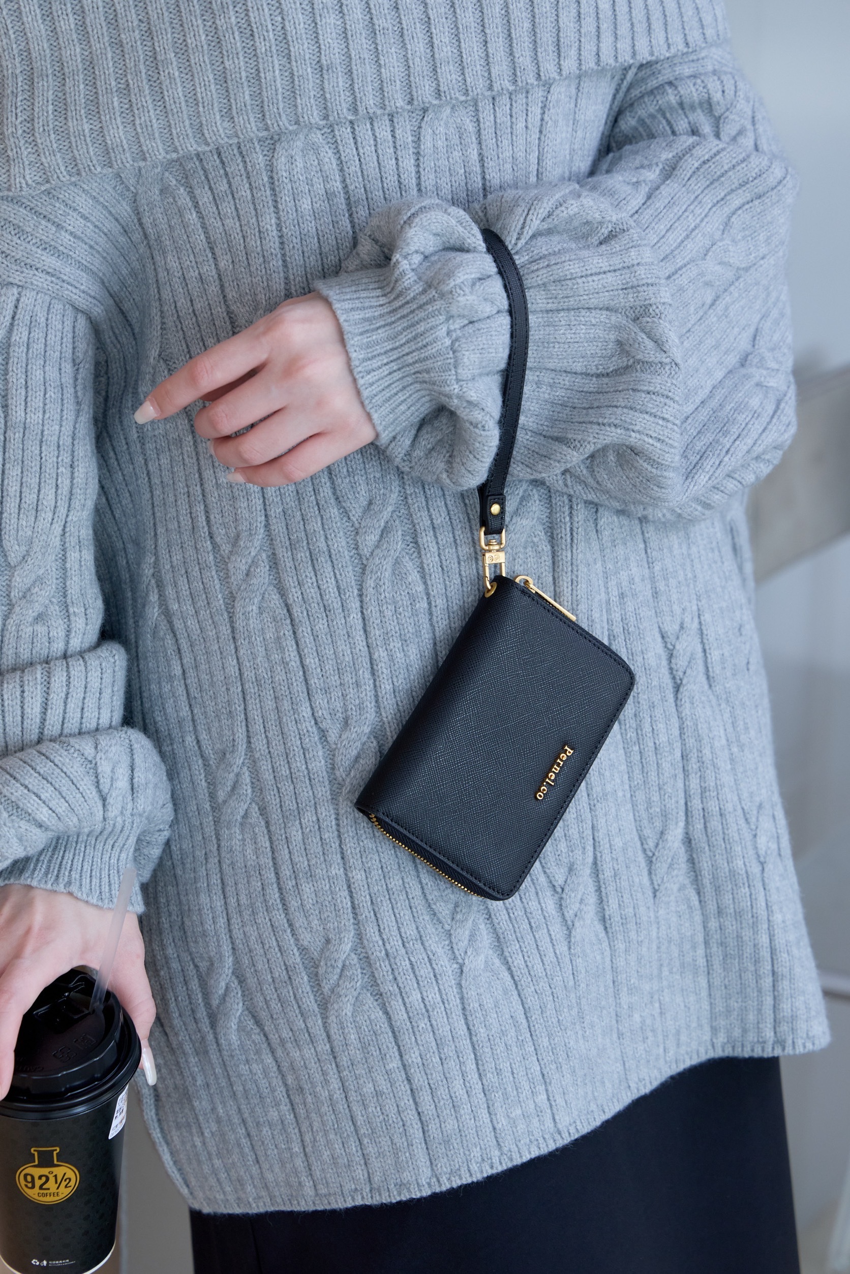 Pernel.co 開運系列拉鍊短夾 x 霧感立體紋理 ( 2 Colors / 黑 )